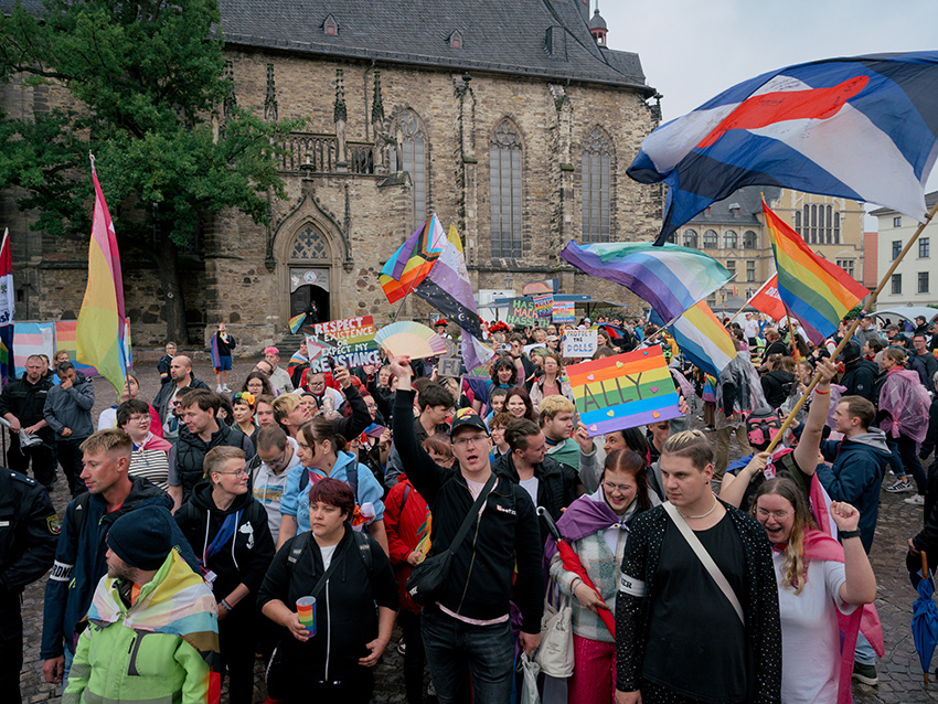 Trotz absurd scheinender kommunaler Auflagen und Naziaufmärschen: In diesem Sommer fanden so viele Christopher-Street-Day-Demonstrationen statt wie nie zuvor, vor allem im ländlichen Raum. Die queere Community hat sich dort noch enger zusammengeschlossen – und kämpft mit neuen „Allys“ nicht nur für die eigenen Rechte. Ein Ortsbesuch.